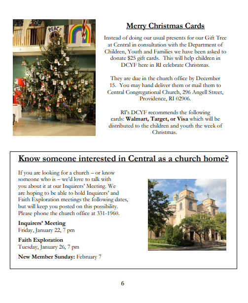 Established in 1852, Central Congregational Church is an Open and Affirming Global Mission Church in the United Church of Christ.